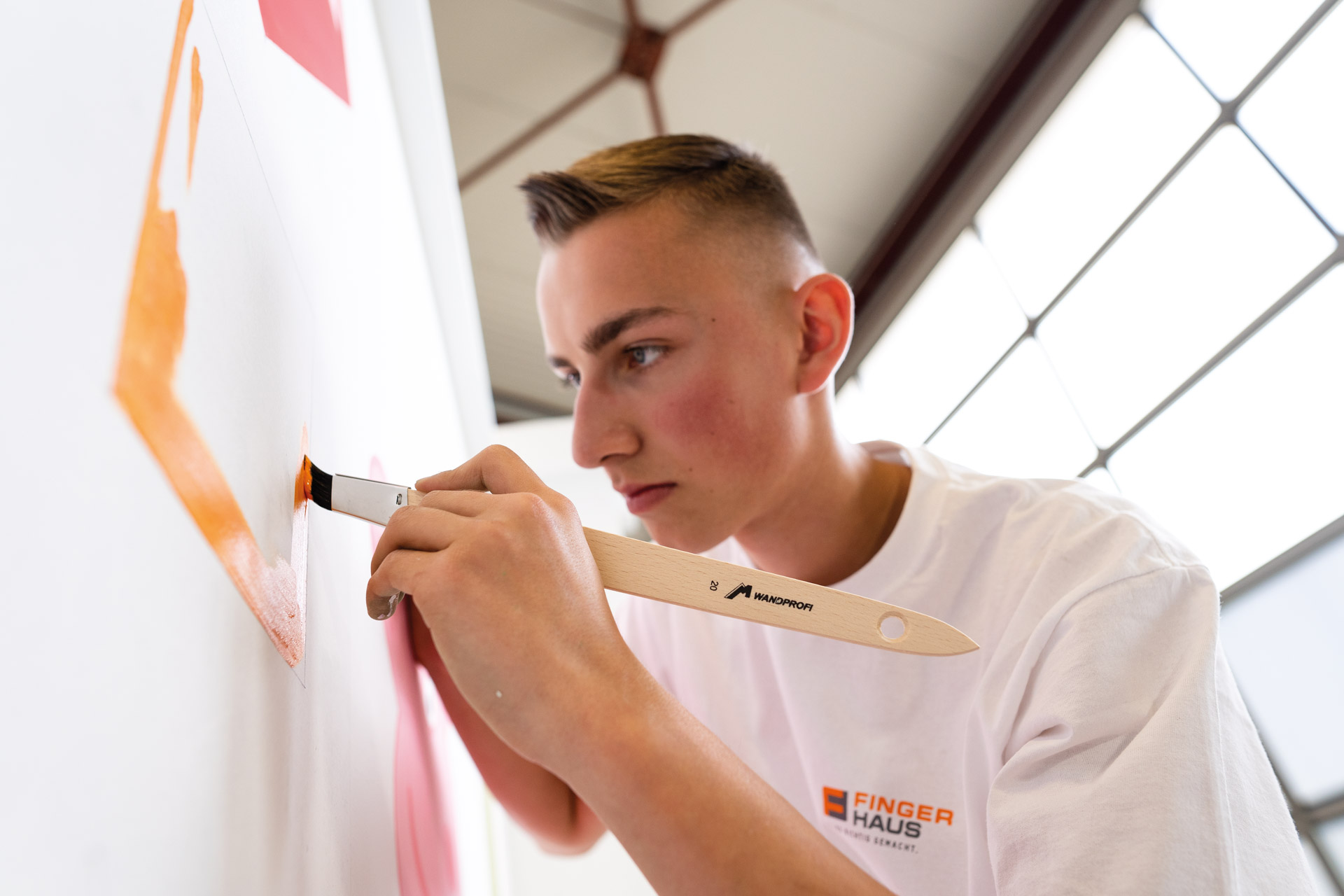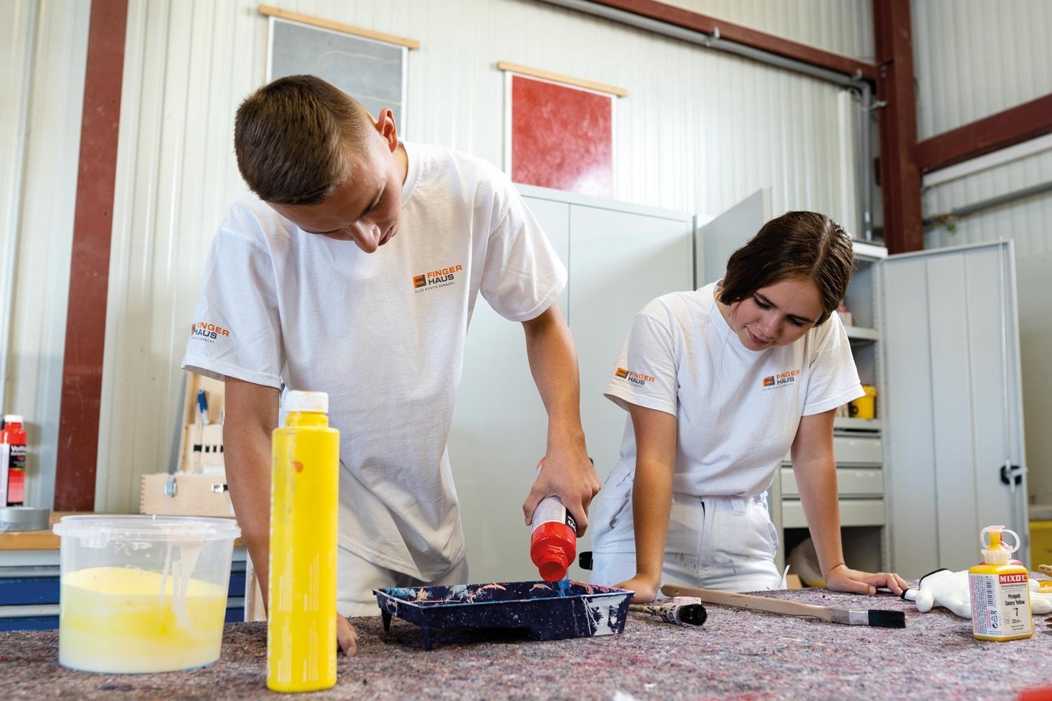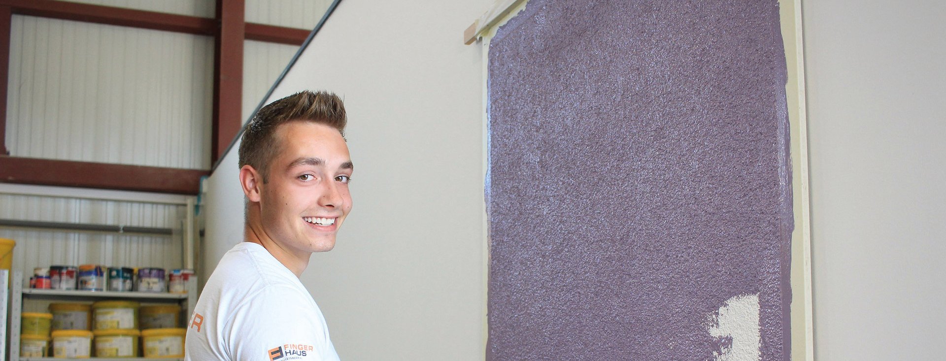 In drei Jahren machen wir dich fit für Pinsel, Spachtel und Co.! Während der praktischen Ausbildung erlernst du die verschiedenen Techniken deines Handwerks mit dem Schwerpunkt Gestaltung und Instandhaltung in unserer Produktionshalle, bei unseren Kooperationspartnern sowie in unserer FingerHaus-Ausbildungswelt in Frankenberg/Eder. Zusätzlich besuchst du blockweise die überbetriebliche Ausbildung auf dem Lehrbauhof in Korbach. Während deiner Ausbildung geht‘s für dich raus zu unseren Fertighäusern: Mit der Maler und Lackierer-Ausbildungskolonne sammelst du in unseren Neubauten wertvolle Kenntnisse rund um Innenwände und Böden. So gibst du unseren Häusern den letzten Schliff! Daneben besuchst du ein- bis zweimal pro Woche die Berufsschule in Korbach.