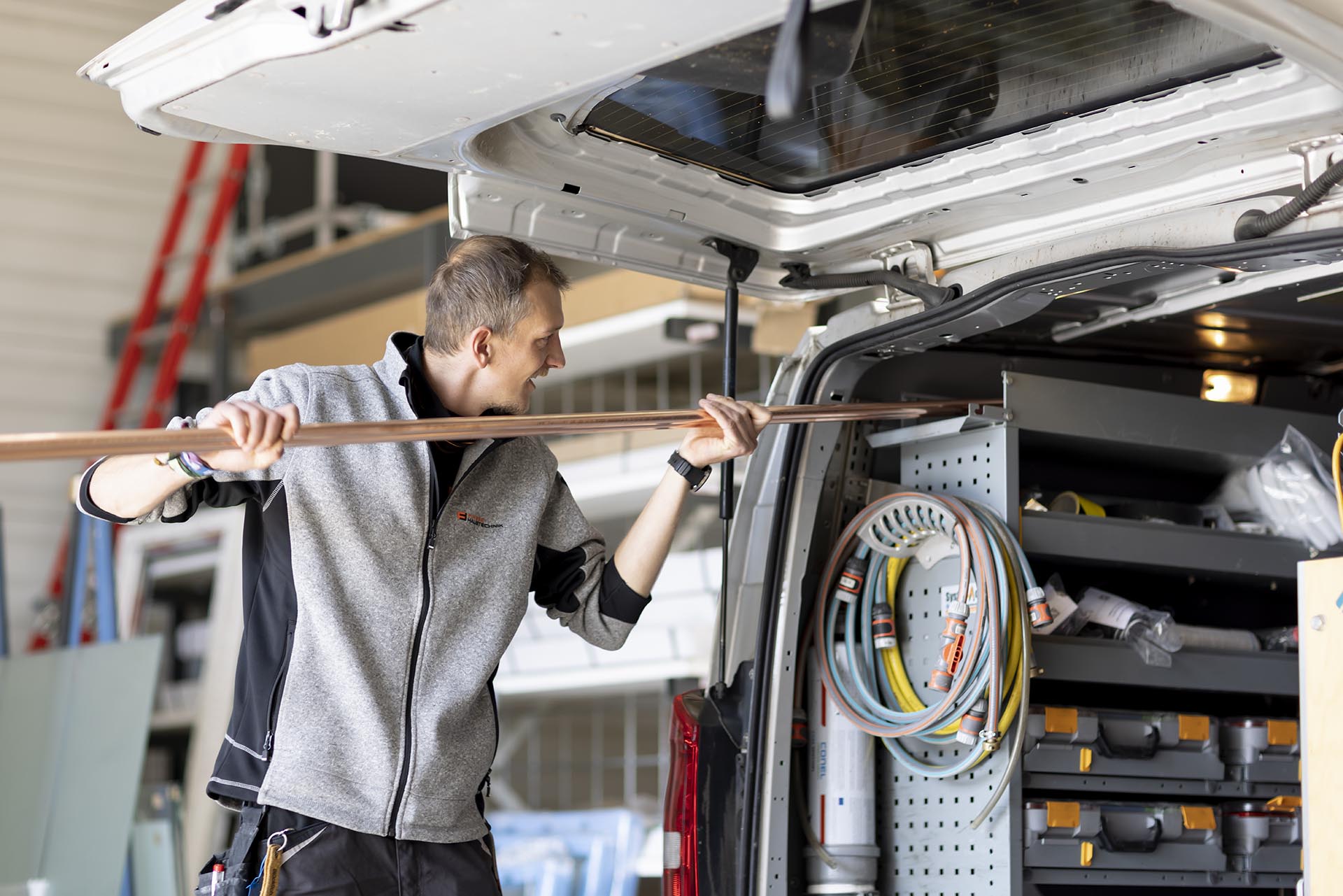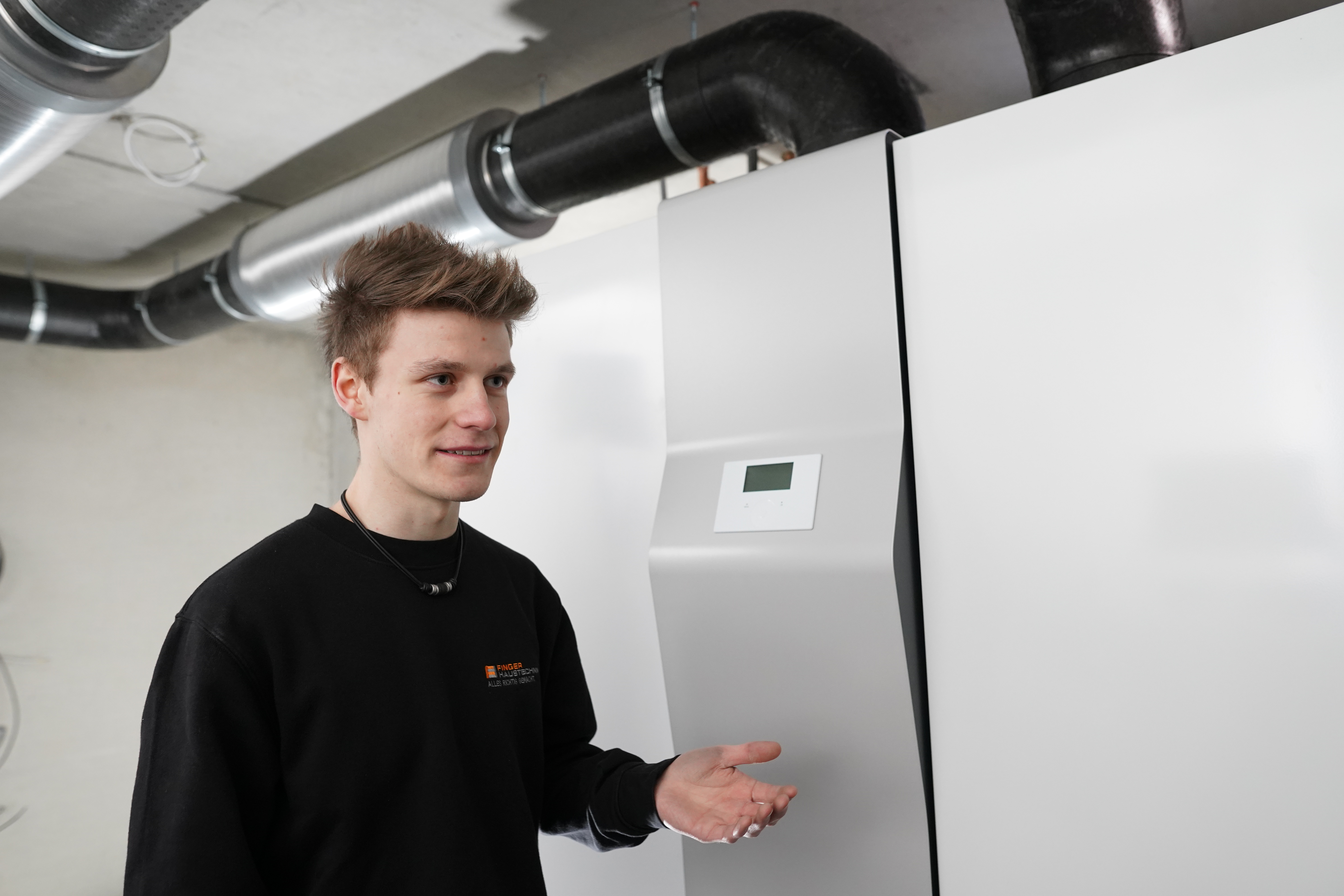 „Wir arbeiten immer mit modernsten Werkzeugen. Außerdem bleibt man durch die Ausbildung immer auf dem neuesten technischen Stand. Wasser und Wärme werden immer gebraucht – es ist ein sicherer Beruf.“