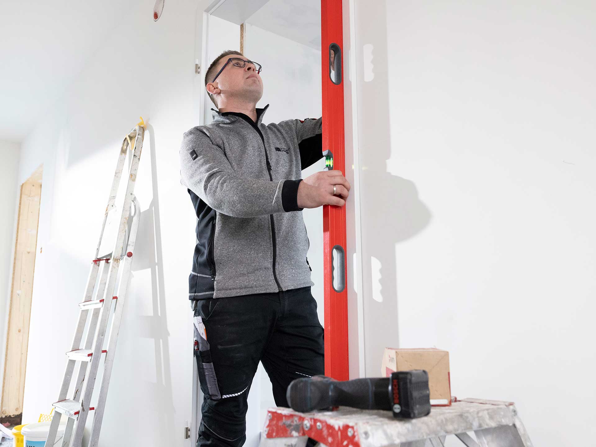 Aufgaben: Böden verlegen, Fußleisten anbringen, Türeneinbau, Sanitärmontage